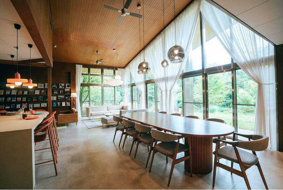 みんなでわいわい過ごしたい時ものんびりくつろぎたい時も、&EN 箱根仙石原は一棟まるごと貸切で思いのままにお使いいただけます。広々としたリビングや集まりやすいダイニング、自然の中のサウナ、さらには、みんなで楽しめるカラオケ、卓球台もご用意。昼はアクティブに、夜はゆったり語り合いながら、時間を気にせずお過ごしください。そのひとつひとつの瞬間が、「またここで集まりたい」と思える思い出になりますように。